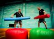 Recreació d’un futbolí en què els jugadors són els nens. Aquests s’agafen en unes barres mitjançant uns elements de subjecció i es juga amb una pilota d’escuma.